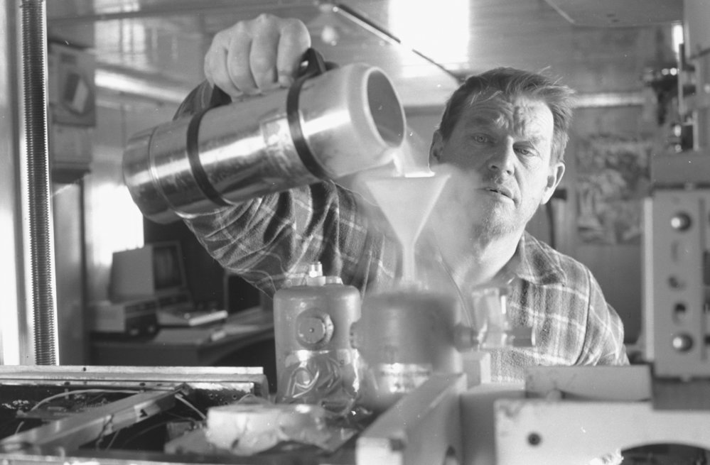 Science Meteorology Brian Mcnamara Pours Liquid Nitrogen Into Spectrophotometer At Arrival Heights Antarctica Nz