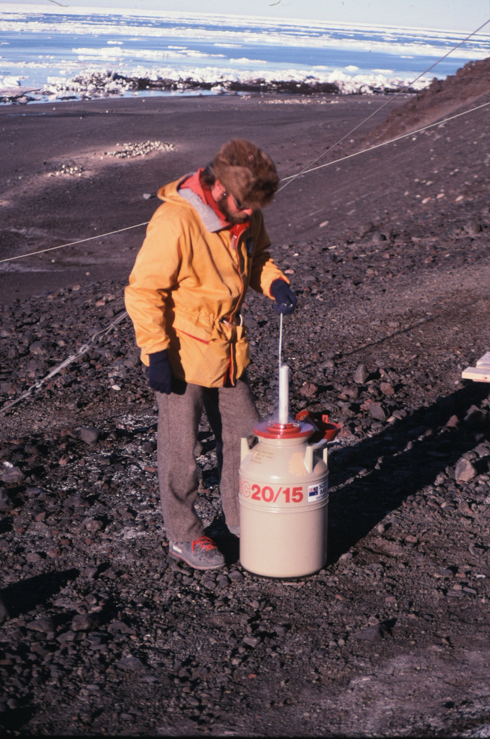 Gordon Court Freezing Skua Tissue In Liquid Nitrogen Antarctica Nz